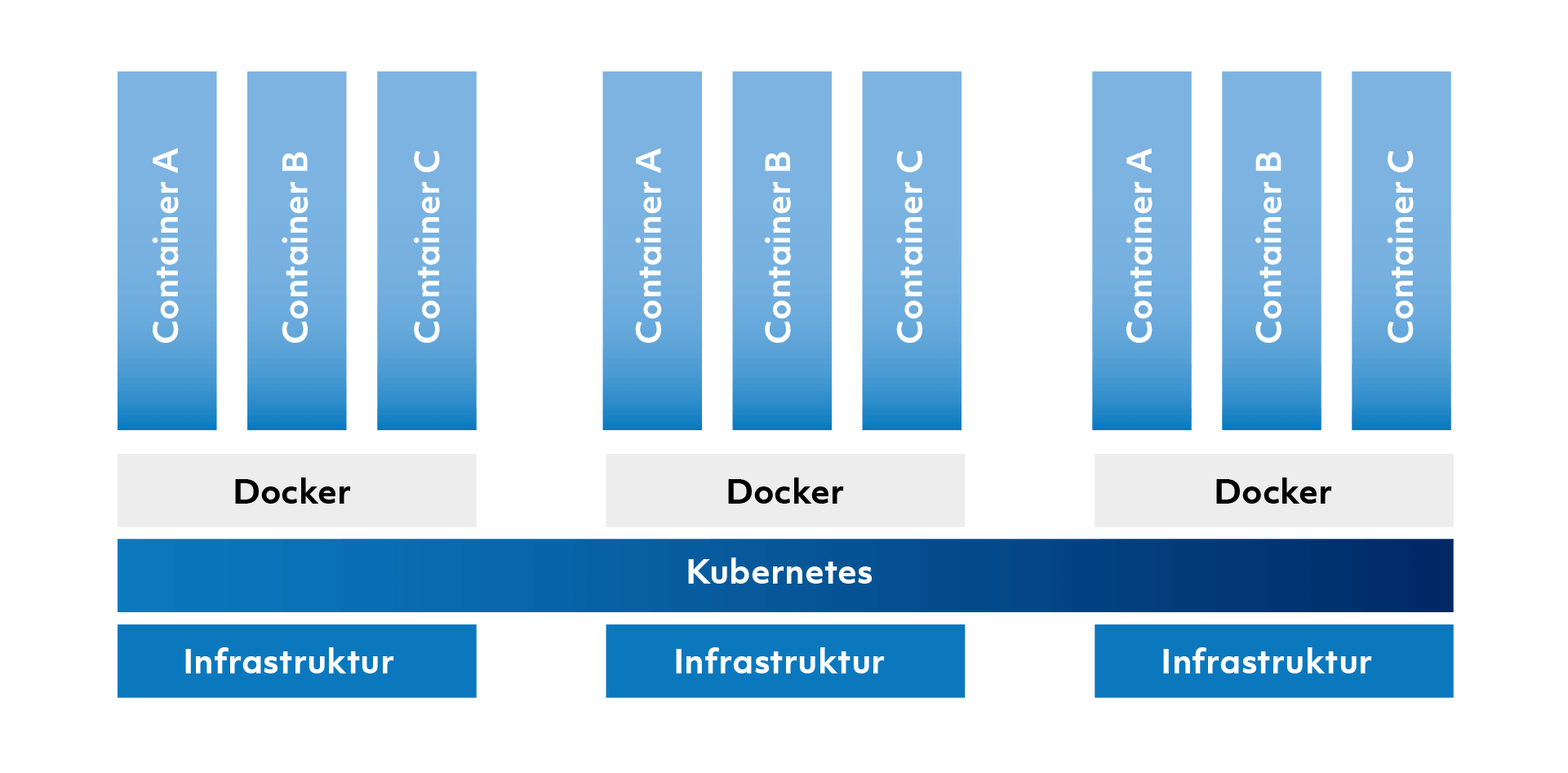 Richtig vorbereitet, lassen sich komplette Service-Architekturen in wenigen Stunden deployen und nahezu vollständig durch den Orchestrator (Kubernetes) steuern. Um dies zu erreichen, müssen die fachlichen Anwendungen von allem befreit werden, was über ihre rein fachliche Aufgabe hinausgeht. Beispielsweise dürfen die benötigte Middleware oder Konfigurationen keinesfalls mehr fest in den Applikationen „verbaut“ sein. Vielmehr steuert der Orchestrator diese bedarfsweise zu. Im Betrieb ergeben sich daraus gleich mehrere Vorteile, die sich anderenfalls nicht realisieren ließen: